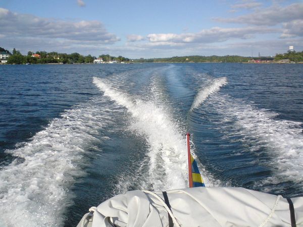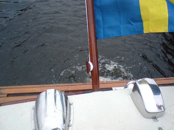 070710 - Taxade lugnt ut från hemmahamnen, allting bra än så länge, och när jag väl släpper på, dj....la vilken skillnad, efter att ha leget i 20-25 knop i 4 år, hon kom förbi planingströskeln direkt, sen var man tvungen att hålla igen lite p.g.a inkörningsperioden, de första 20 timmarna tredjedels gas, men kan berätta nu efter 20 timmars körning och full gas har getts, så hamnar hon på 4300 varv och gör 40 knop, vilket lämnar lite till att jobba på, en mindre propp i RF skulle sitta fint, men det kan man ha att plocka fram senare, nu går hon som aldrig förr och det är man supernöjd med efter allt jobb!