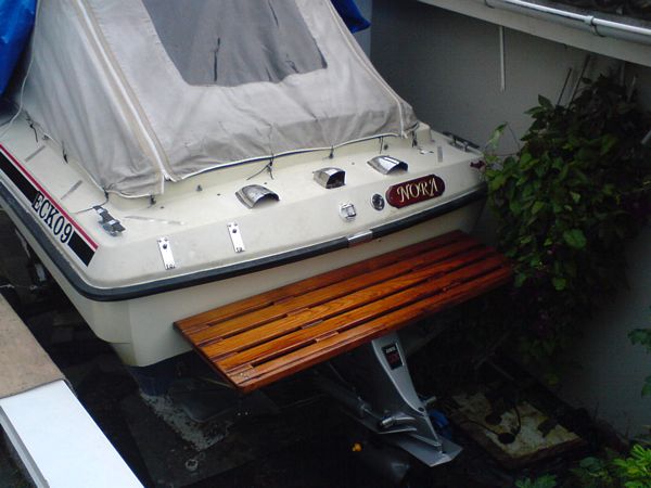 070322 - Skölden kom på plats, badbryggan slipades och fick 12-15 lager D1 och 10 lager D2, blev kanonfinish