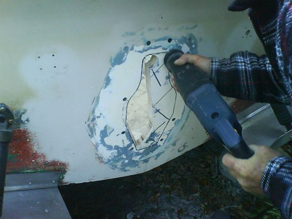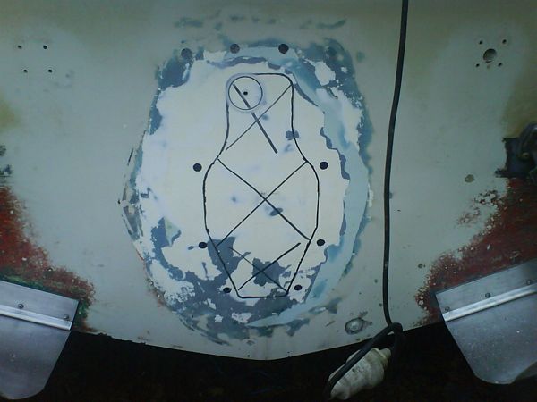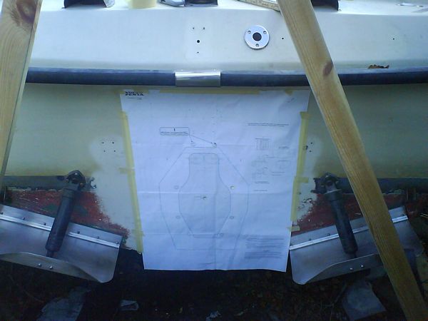 061015 - De nya motorfästena mätes ut, tyvär ingen hjälp av det gamla som synes, slog igen bakifrån för att lägga första gelcotelagret!