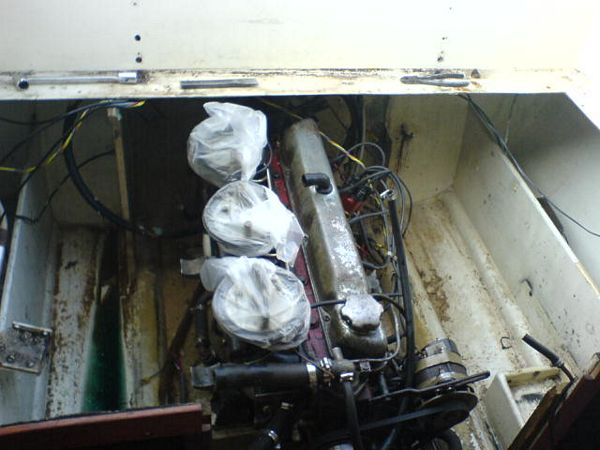 Vinterns projekt var att byta ut drivlinan i pärlan, Volvos B30/AQ170+280T drev hade gjort sitt, det var dags att köpa ny maskin!Vi kollade runt om bästa pris, och det blev Volvo Penta 4,3L V6 GXI, komplett med SX drev och ny styrning/elektronik och reglage!
