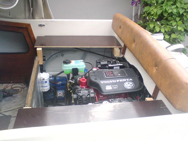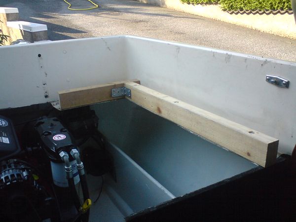 070610 - Motorlådan var vi tvugna att höja 3cm, löste det med en tredelad lucka, så man kommer åt sidofacken utan att behöva öppna hela luckan, de yttre luckorna är ledade i bakkant!